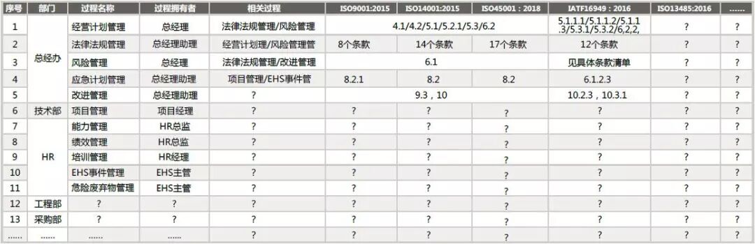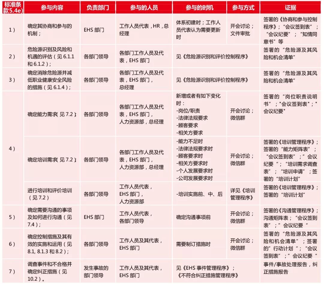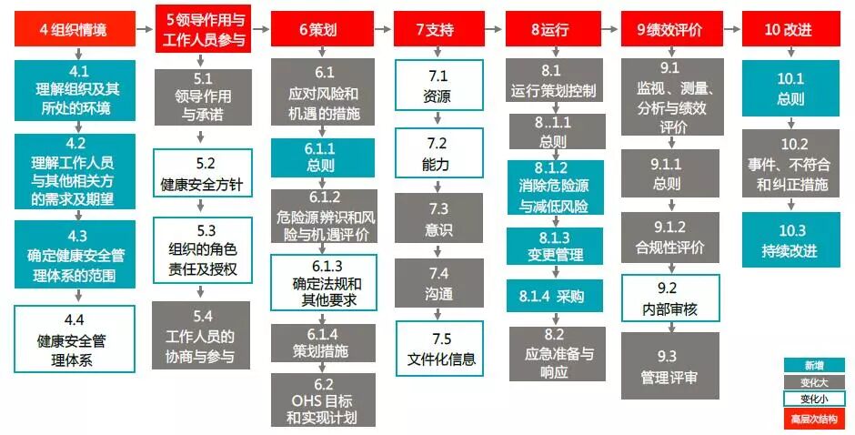 分享 | 如何借助ISO45001换版,实现多个管理体系的整合2018年3月12日,国际标准化组织(ISO)发布了职业健康与安全新标准--ISO 45001。整合+融合就成为组织乘ISO45001发布之风需要着手进行的、将多个管理体系如质量、环境、职业健康安全要求整合并融入到组织的业务过程, 从而提高组织运行效率和有效性的当务之急。 ISO 45001采用了和ISO9001:2015,ISO14001:2015 相同的高层次结构,围绕帮助组织获得职业健康安全管理体系的如下预期结果: a) 持续提升职业健康安全绩效; b) 满足法律法规和其他要求; c) 实现职业健康安全目标。 旨在使组织实现“预防工作相关的人身伤害和健康损害”,以提供“安全和健康的工作场所”。 ISO 45001 FDIS 条款总览图 ISO45001 标准强调,不仅要关心组织自己员工的职业健康和安全,还要考虑组织越来越多的外包场所的服务人员和在现场服务的承包商人员的职业健康和安全。 ISO45001 标准还强调,不仅要关注职业健康安全风险,还要关注职业健康安全管理体系的风险和机遇。 ISO45001 标准更强调在建立职业健康安全管理体系时要考虑组织的宗旨和内外部环境及工作人员和相关方的需求,并将管理体系要求融入组织的业务过程。 ISO45001 特别强调领导尤其是最高管理者的作用,确保工作人员的参与和协商。 因此,整合+ 融合就成为组织乘ISO45001 发布之风需要着手进行的、将多个管理体系如质量、环境、职业健康安全要求整合并融入到组织的业务过程,从而提高组织运行效率和有效性的当务之急。 整合的原理:不同管理体系具备如下 • 相同的高层次结构:条款4-10 • 相同的应用原则:自愿原则、广泛适用、认证依据、相互兼容 • 相同的管理理念:领导作用、全员高度参与、基于证据的决策、改进、关系管理、风险思维、过程方法 • 日常运营必备:组织盈利的前提是产品质量、安全生产、无环境污染 整合的必要性:通过减少重复性工作从而 • 提高管理效率 • 降低资源浪费 • 减少抵制情绪 整合的方式:可通过如下方式实现整合 • 基于业务过程:明确部门职责权限、梳理职责范围负责的过程和相关过程、对应不同管理体系标准条款要求、完成过程乌龟图 - 下表:过程、过程拥有者、相关过程和标准条款对应实例 部门、过程、过程拥有者、相关过程、标准条款矩阵表 - 下面A 和B:关于ISO45001 5.4 工作人员参与的文件规定的可读性对照实例 A.大量文字描述,不易获取信息 公司需确保以下内容的确定有工作人员和/ 或代表的参加: 1) 确定其协商和参与的机制;本程序规定了协商和参与的机制,本程序的制定和批准需经与工作人员代表的讨论和同意方可生效; 2) 危险源识别和风险和机遇的评估; EHS 管理人员组织工作人员及其代表共同进行危险源的识别、风险、机遇的评估,详见《危险源识别、风险和机遇的评估》; 3) 确定消除危险源并减低职业健康安全风险的措施; EHS 管理人员组织工作人员及其代表共同确定消除危险源并减低职业健康安全风险的措施; 4) 确定能力要求、培训需求、进行培训和评价培训; EHS 管理人员组织工作人员及其代表与人力资源部、安委会共同确定职业健康安全体系的能力 要求,确定培训需求,提交给人力资源部,制定培训计划,并组织实施; 5) 确定需要沟通的事项及如何进行沟通; EHS管理人员组织工作人员及其代表共同制定《沟通管理程序》,明确需要沟通的事项以及方式、方法; 6) 确定控制措施及其有效的实施和运用;EHS管理人员组织各单位工作人员及其代表,共同确定各危险源的控制措施,以及如何有效实施和运用。 7) 调查事件和不合格并确定纠正措施;EHS 管理人员组织发生事件、事故、不符合单位的工作人员代表,参与相应事件、事故、不符合的调查、处理工作,共同确定纠正措施,并记录在“事件/ 事故处理报告”中。 B.表格描述,一目了然 本文作者为:BSI 质量分院院长  |